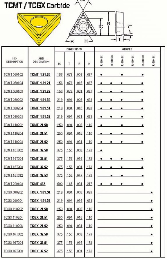 Carbide Comparison Chart